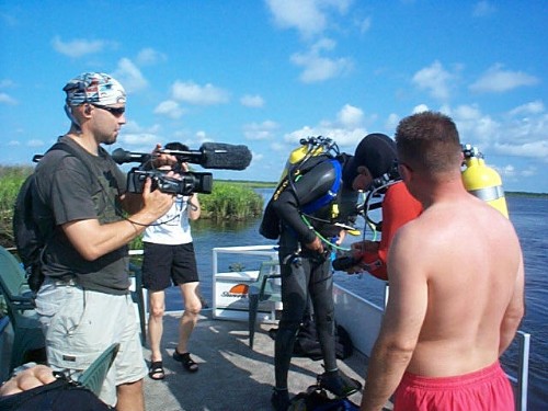 In the spring of 2006, Jerry Fortenberry was host to John Chatterton, and Richie Kohler. Chatterton and Kohler are featured as the "Deep Sea Detectives" on the History Channel. Chatterton is credited with the discovery of the unidentified German U-Boat that was located about 60 miles off the New Jersey shore. After identifying the U-Boat, history was rewritten. Chatterton and Kohler are pioneers in the world of diving, you can learn more about them and their diving experiences in books like, "Shadow Divers" and "The Last Dive". Jerry was asked to guide them to the artifact and fossil hunting areas of the Cooper River in Charleston S.C.. They spent three days filming a show featuring the Cooper River and the treasures that can be found. |