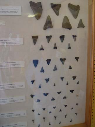 Above, a couple of displays in the rangers office that show some of the fossilized teeth found on the island.