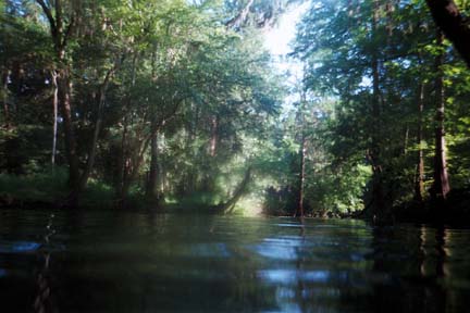 My first day on the Santa Fe River was fantastic. When you are on the river and no one is around, it looks like a prehistoric landscape. If you look close, you can see a mammoth hiding in the trees. |