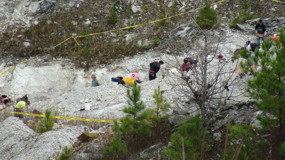 Tom Leary on his comeback club dig, he found one of the best specimens of fluorite and barite on matrix I saw that day.