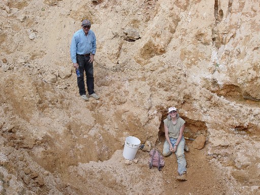 October 21-22-23, 2005It's time for yet another fieldtrip report from Diamond Hill, I know what you're thinking, what else could there be to report after all the trips our club has had there this year?. Every trip to Diamond Hill is a new adventure, especially when you have Chunky and his trackhoe on site. The trip began Friday with just a few M.A.G.M.A. members arriving to setup camp for the weekend. Chet and Chunky were there planning on where to dig, soon the dirt was flying and by Friday afternoon, Dave, one of Chets crew had recovered some nice specimens from the Smoky Pit. We had Chunky do quite a bit of work in the skeletal pit as well. Saturday many more members began to arrive and the trackhoe was back at work bright and early, soon many nice specimens began to make their appearance.