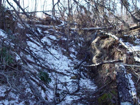 Herbert corundum mine shaft. This is hard to see, especially with all the snow on the ground. Be careful if you venture out there.