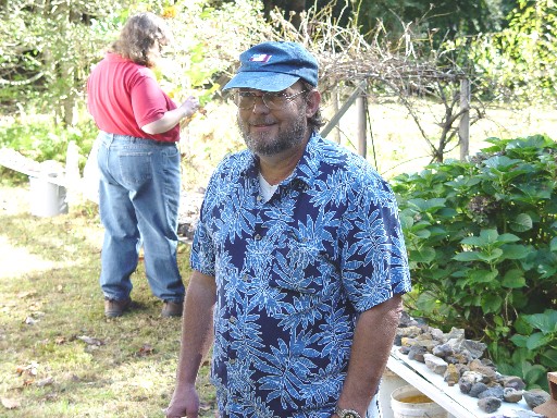 Time to report on yet another fantastic annual fall M.A.G.M.A. Picnic. The weather was perfect. This year the picnic was held at our member Sharon's house. Sharon owned and operated the Opalhaus Rock shop for many years and has decided to sell off much of her old stock. Steve P., Robert and Linda and Sharon spent a lot of time setting up everything for the event and it was great. The combined picnic and sale was a blast for the members who attended. Great food and great deals on rocks of all kinds, there was cutting material, gemstones, specimens of all kinds, jewelry and to much more to list.