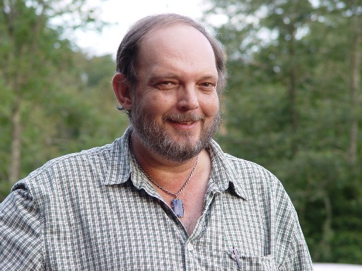 Russ Krahnert having dinner. Russ is a glass artist from Southern Pines N.C., he brought many nice glass pieces and rocks to trade.